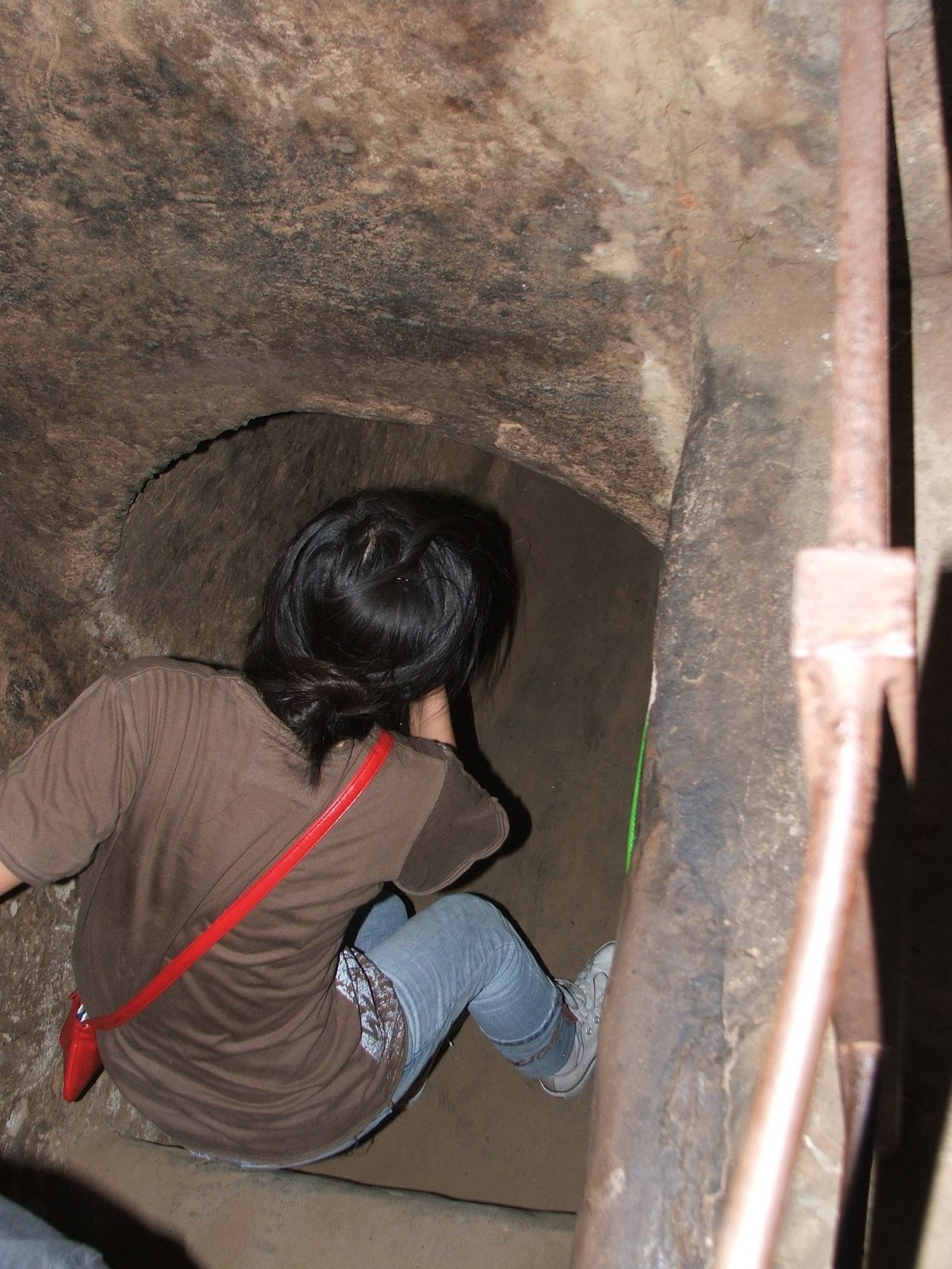 You have to climb down into a bunker, then into a tunnel (see below) and you start off needing to walk bent over. Less than 100 meters into the tunnel there is an exit, or you can keep going. After crawling around on your knees and climbing up and down little passage ways, your legs get really tired. There is very little light, which is only there for tourist reasons, not for the war, and I sweated alot down there. I got to the second last exit before I got out because my legs were sore. Apparently the last stretch was very small!
