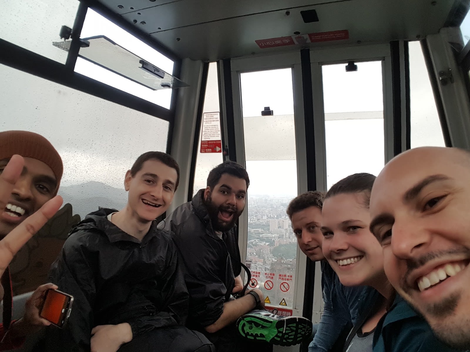 Rob wasn’t dealing with the heights too well, but he eventually became a bit more comfortable with it and was able to enjoy the beautiful view of the clouds floating over the mountains and city in the distance.