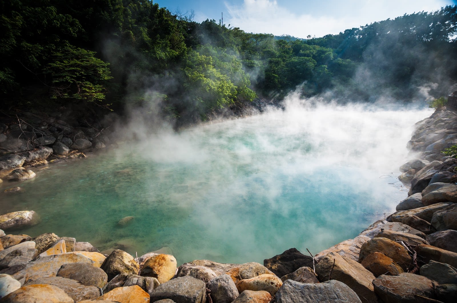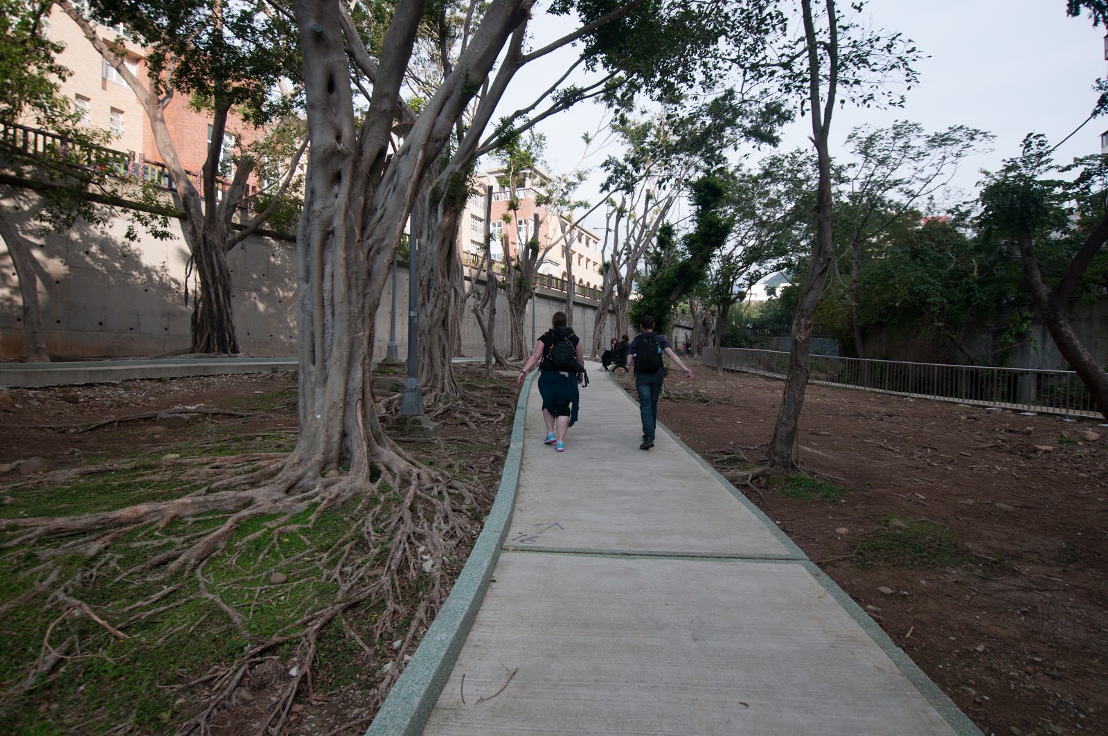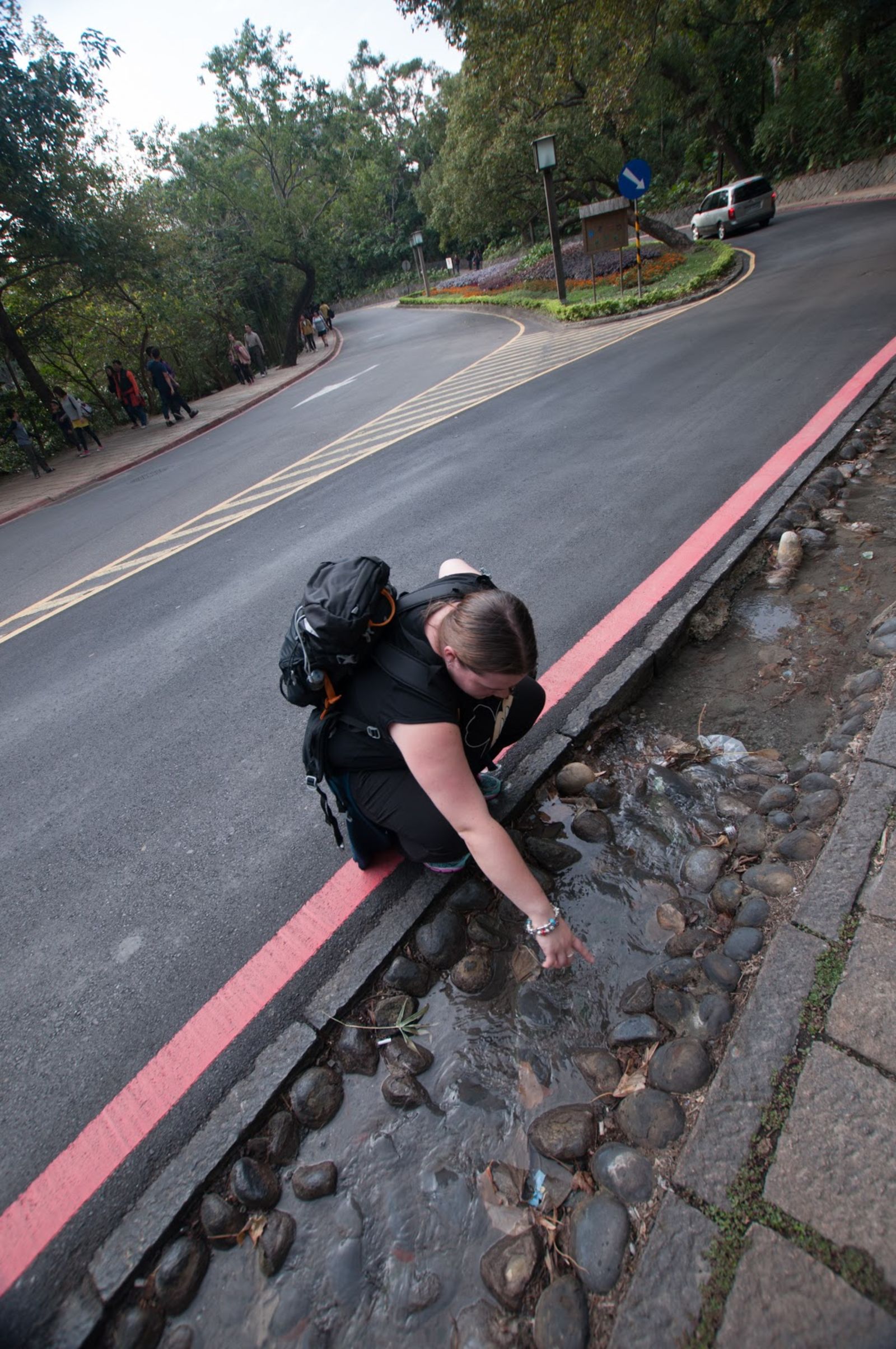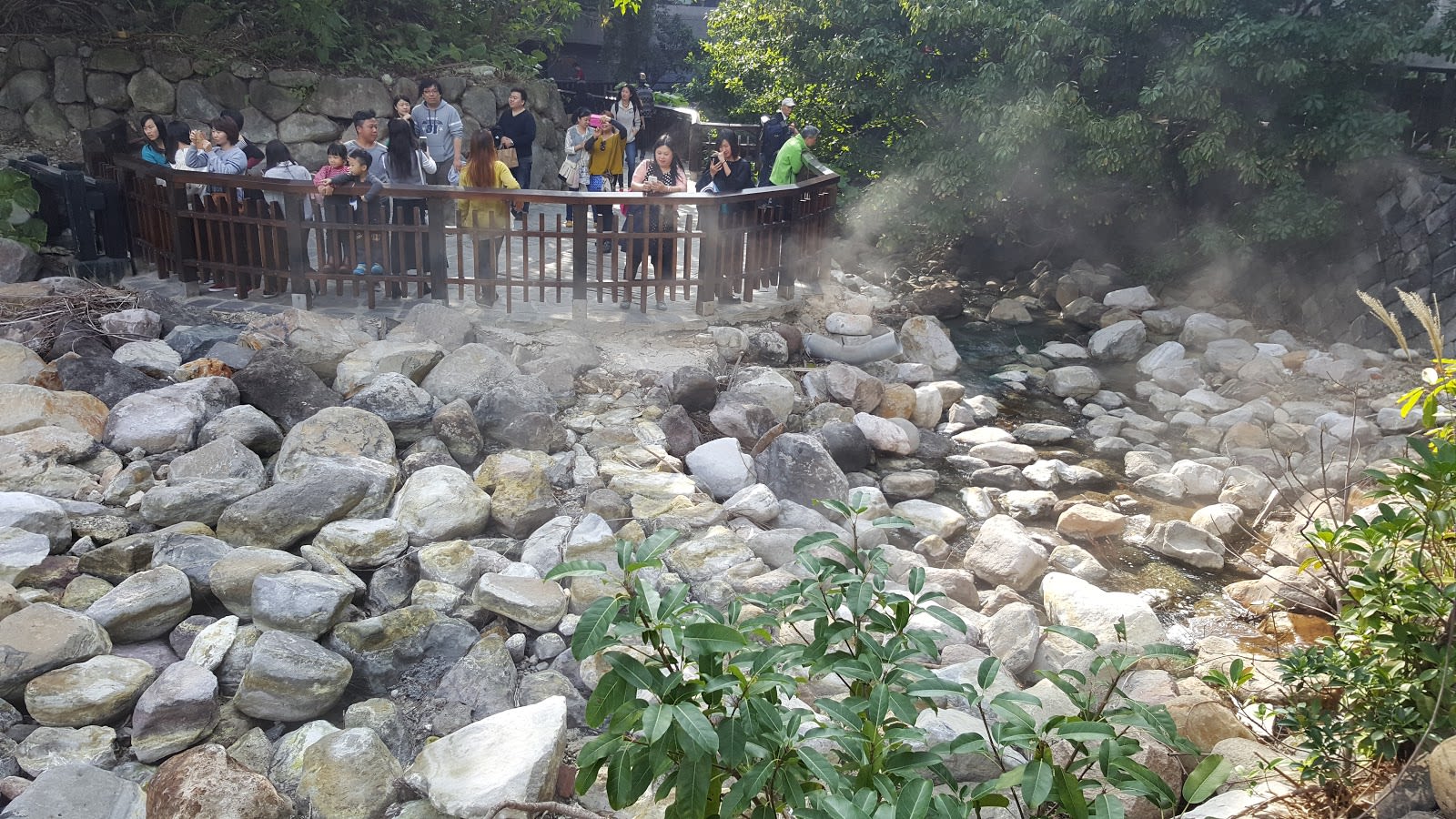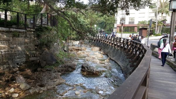We took the train to Beitou station and then another train to Shin Beitou. This place felt like more of a country town that the urban city area we were staying in. You could smell the Sulfur in the air and there were quite a few people around. There is a river with the natural hot spring water flowing right through the town with a tourist friendly path along it with signs and little wooden bridges, very picturesque.