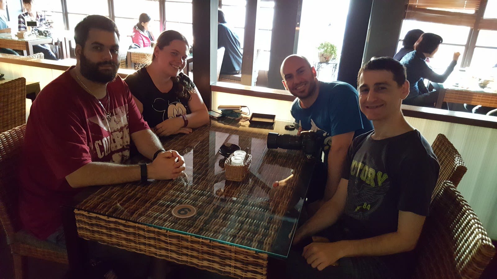 After drying off in the sun for a little bit we packed up our stuff and headed back towards the main town. We were googling a hot spring to go for a proper bath and found Marshal Zen Garden and navigated there. It was a bit of a hike but the view along the way was really nice! We arrived at the spa and there were tiny, winding paths leading between what looked like small huts amongst the trees. When we reached the desk there was some confusion as the staff barely spoke English and they were pretty busy. It took a while, but we eventually worked out the prices and timeslots available. Unfortunately I can’t remember the prices, but they were what you would expect for a mineral spring in Australia, not super cheap. Sarma wasn’t interested in participating so Chris kept Sarma company and they headed back to town for dinner. As it turns out there were only two spots available and they were the last timeslots for the day, which also meant we had some time to kill. Just down the path was a tea house, so Anth, Amy, Rob and I went to get some much needed food and some tea.