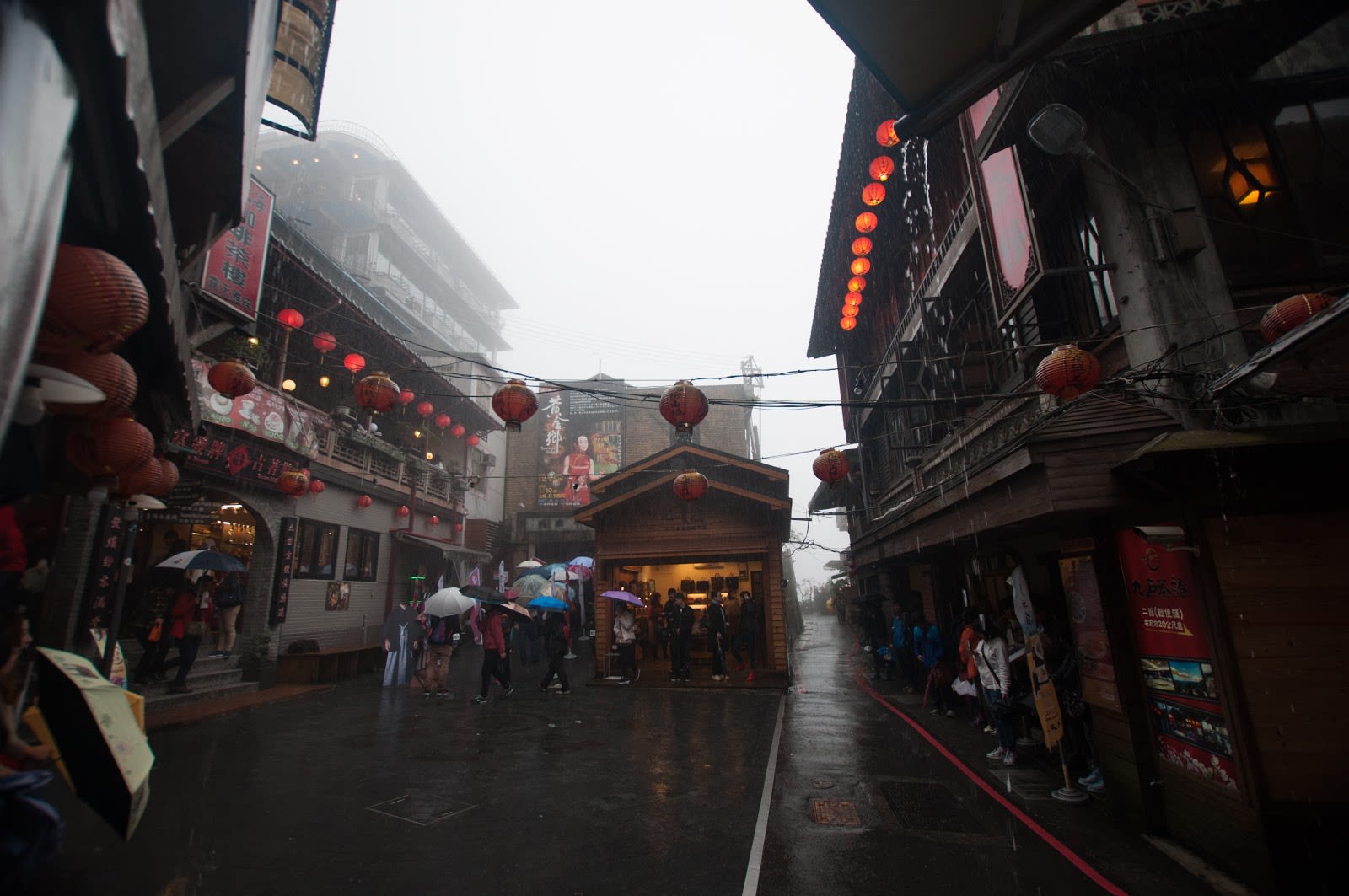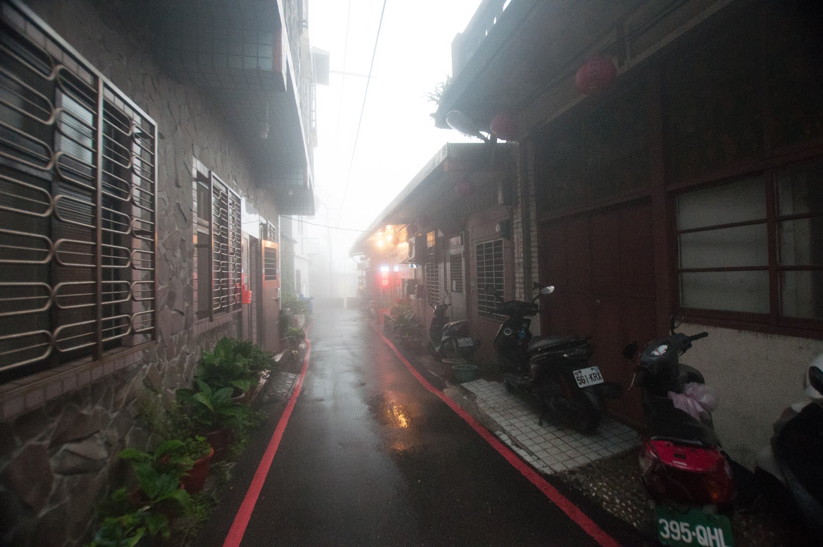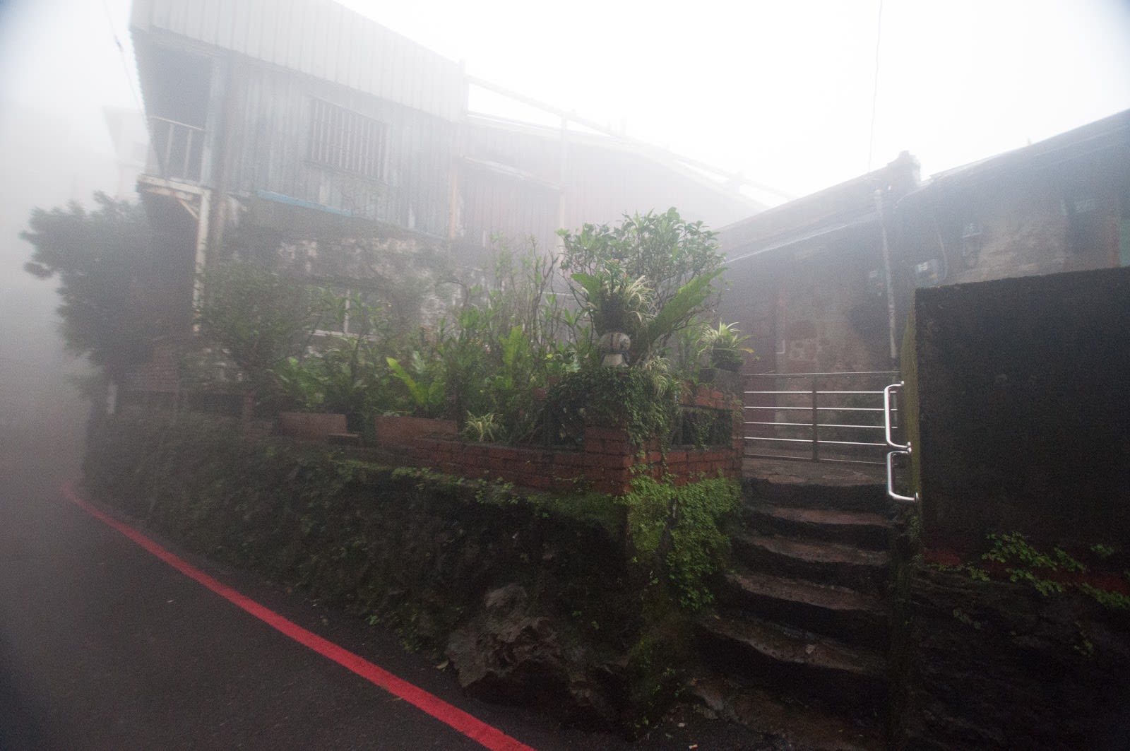 Up next was Juifen Old Street which was high up in the mountains. I’m not sure I’ve ever seen so much cloud and fog cover so close. Along with the low number of people out (because of the rain) the whole area had a really eerie atmosphere. We pulled up at a large temple and even up close, most of it was covered by fog, it looked amazing! Peter pointed us in the right direction and started walking towards the town center through the back streets of the village. This way was dead quite and let us skip a lot of the crowds on the way.