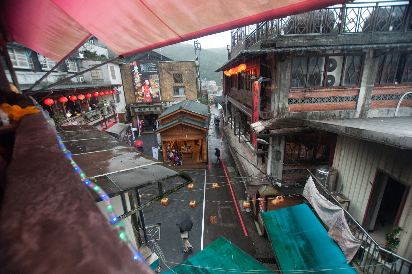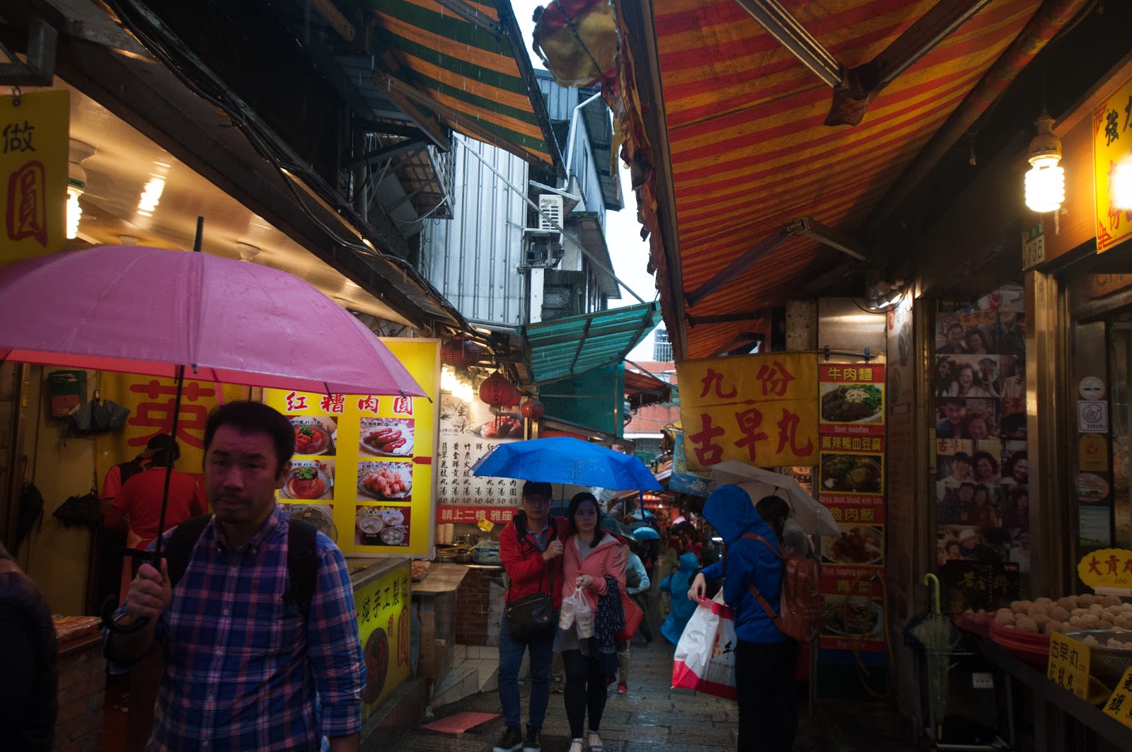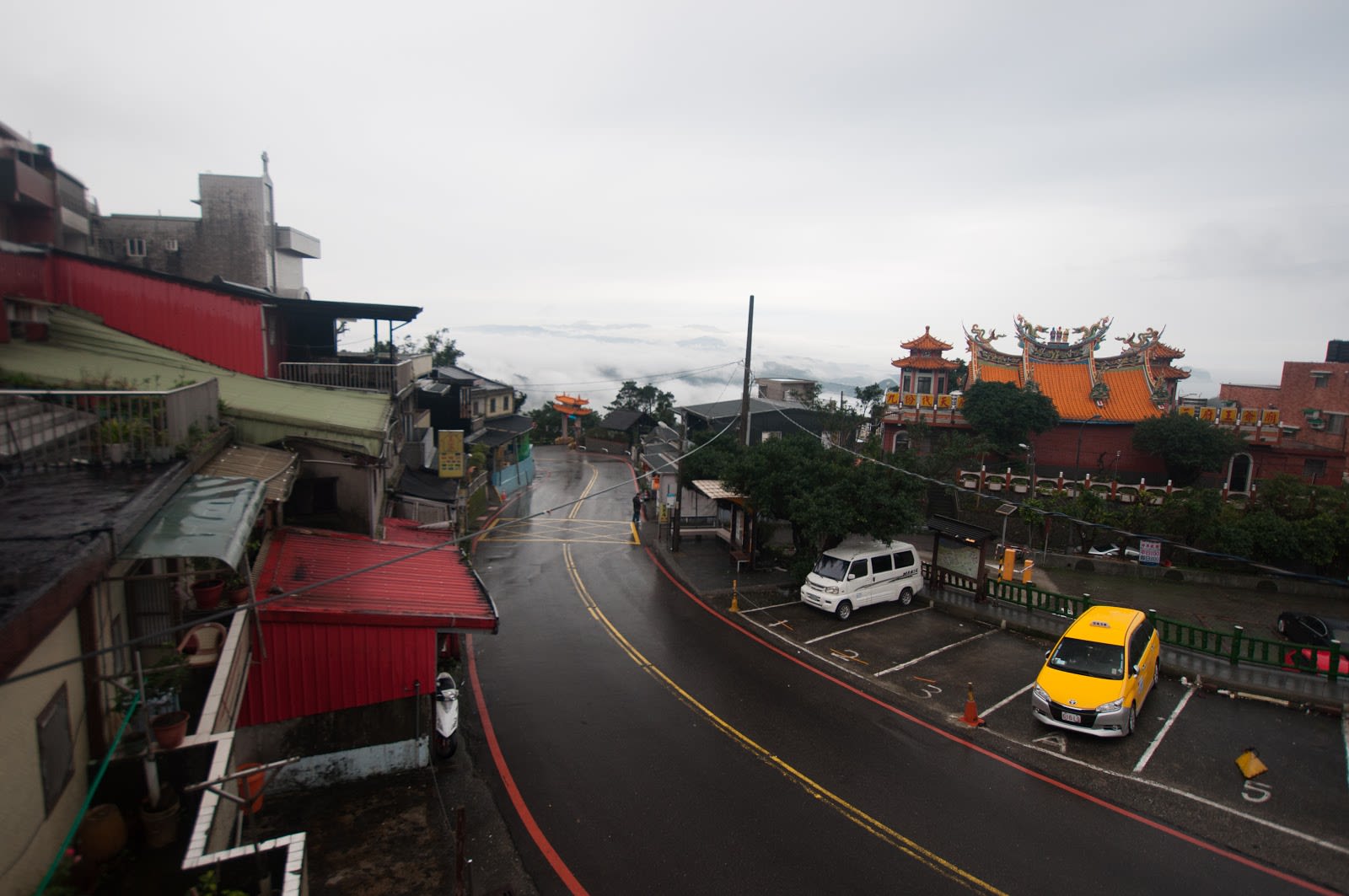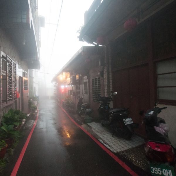 Up next was Juifen Old Street which was high up in the mountains. I’m not sure I’ve ever seen so much cloud and fog cover so close. Along with the low number of people out (because of the rain) the whole area had a really eerie atmosphere. We pulled up at a large temple and even up close, most of it was covered by fog, it looked amazing! Peter pointed us in the right direction and started walking towards the town center through the back streets of the village. This way was dead quite and let us skip a lot of the crowds on the way.