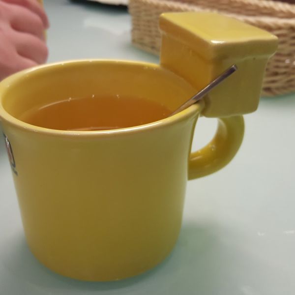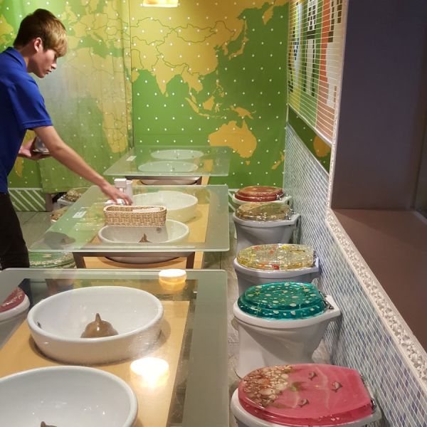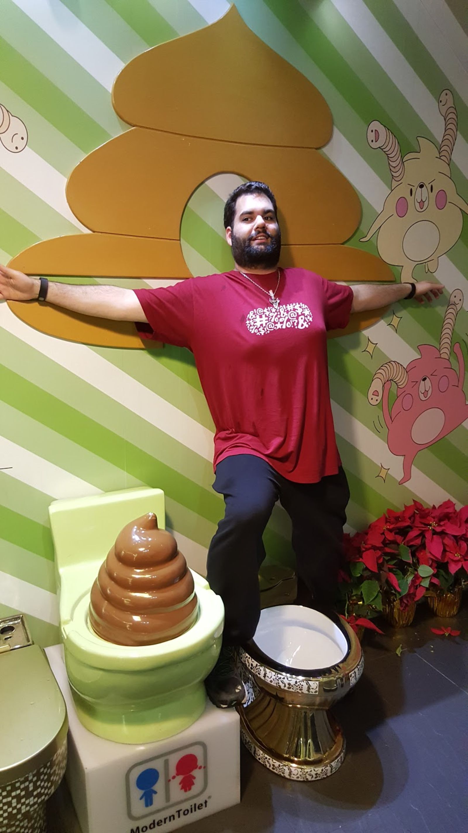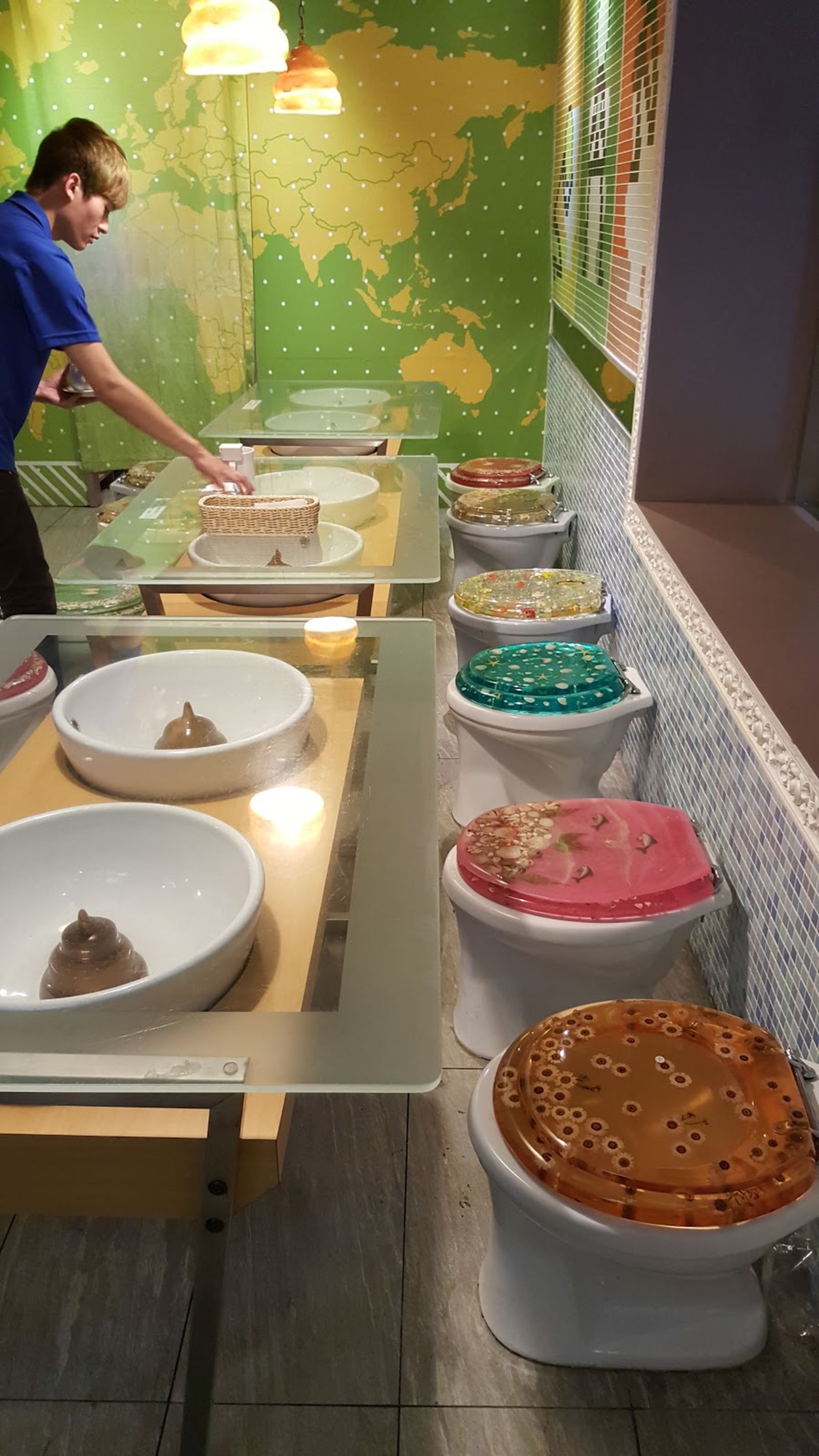 When we arrived, there was a toilet in the lobby and some kids were getting their photo taken, so we thought we’d follow suit and take some photos in front of the sign too. Anthony called this photo the “Poo Angel”.