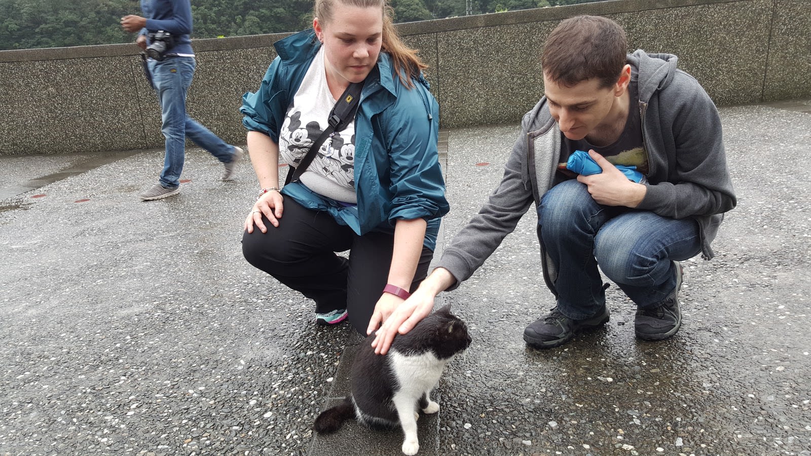 We found Peter and we drove out to our final stop for the day, the Hutoung Cat village. This was a big deal for Rob and he was pretty excited! When we got to the car park, you could already see some cats lingering around and Rob darted off ahead. The cat village was once a popular mining town, but eventually the mining started to decline and people moved away. It wasn’t until then that a local resident started organising volunteers to give some of the abandoned cats a better life. They posted cats pictures online and cat lovers from everywhere started responding and helping out. The town then became famous for cats and tourism revived the township. There is cat memorabilia for sale at the market stalls and cat artwork everywhere including painting and statues at the station and randomly around the township.