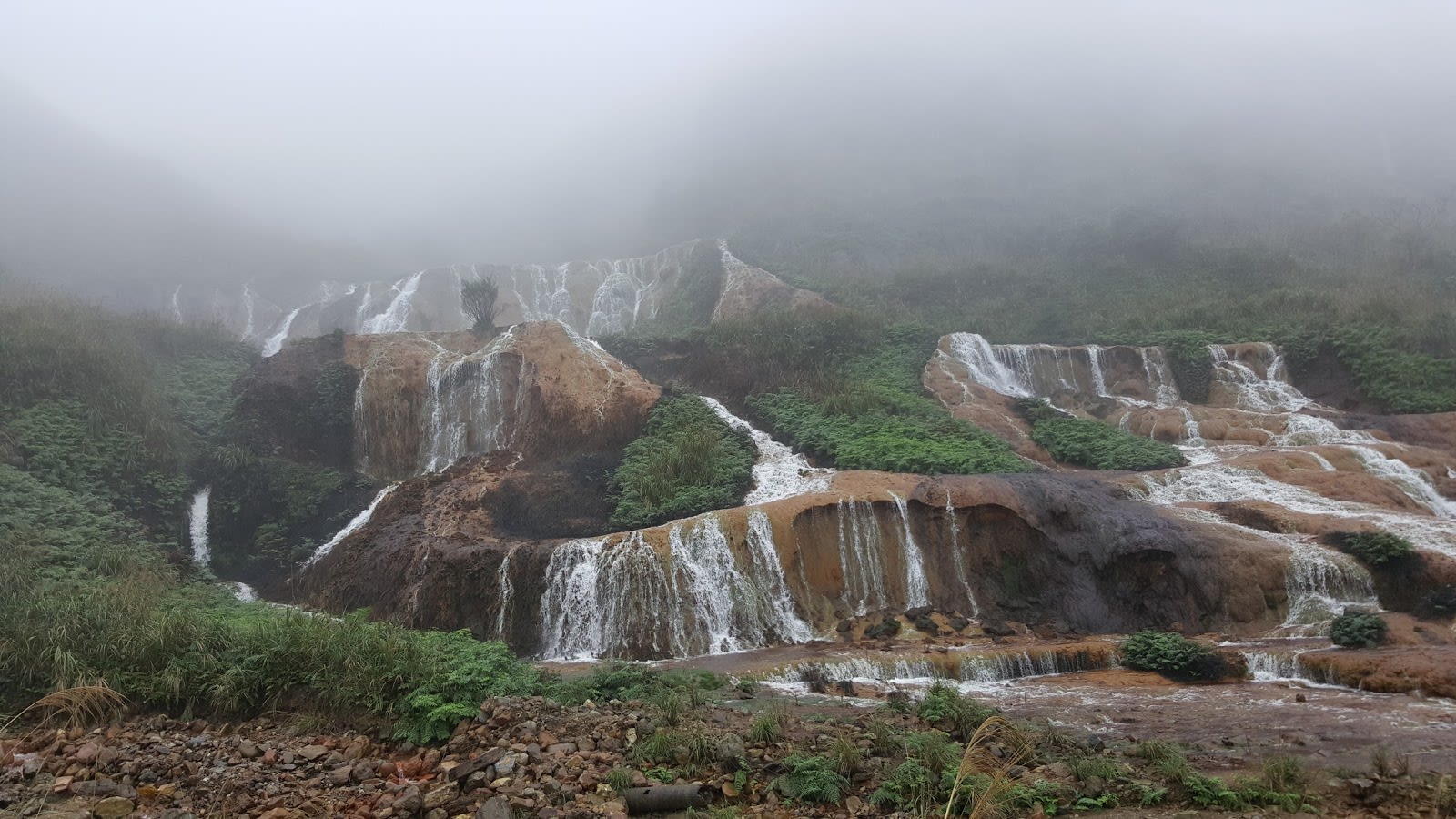 After a quick break to eat, we met up with Peter again and we headed out to Juifen. The first stop was a somewhat random waterfall on the side of the road. This waterfall was called the Juifen Golden Waterfall because the surrounding rocks and dirt had a yellow tinge to them. Juifen used to be a popular mining town in the past and water had made its way from the top of the mountain and through these mines where copper and iron were collected and forged its own waterfalls in to the landscape and over the years the entire stream had turned everything yellow. It turns out that this water is also quite toxic due to high levels of arsenic, but as long as no one drank the water, it made for an interesting tourist attraction. As it was raining, we jumped out of the car, quickly took some snaps and hoped back in to go to the next stop on our tour.