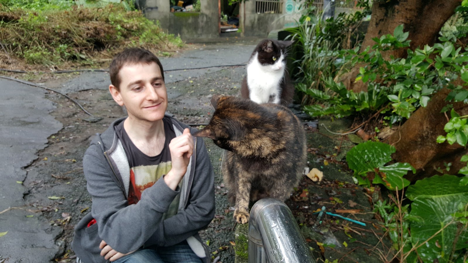 We spent a bit of time walking around and petting the cats. As I bent down to reach out to one of them, it climbed up on me and made itself comfortable and started sleeping! It was fun to take photos around here, there is a pretty big variety of cats and the backdrop of the mountains covered in low hanging cloud looked great and provided the perfect lighting conditions. There were even a few dogs around the place, but they seemed pretty on edge and mostly kept their distance, probably because they were significantly out-numbered!