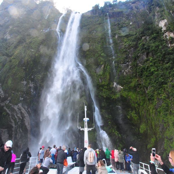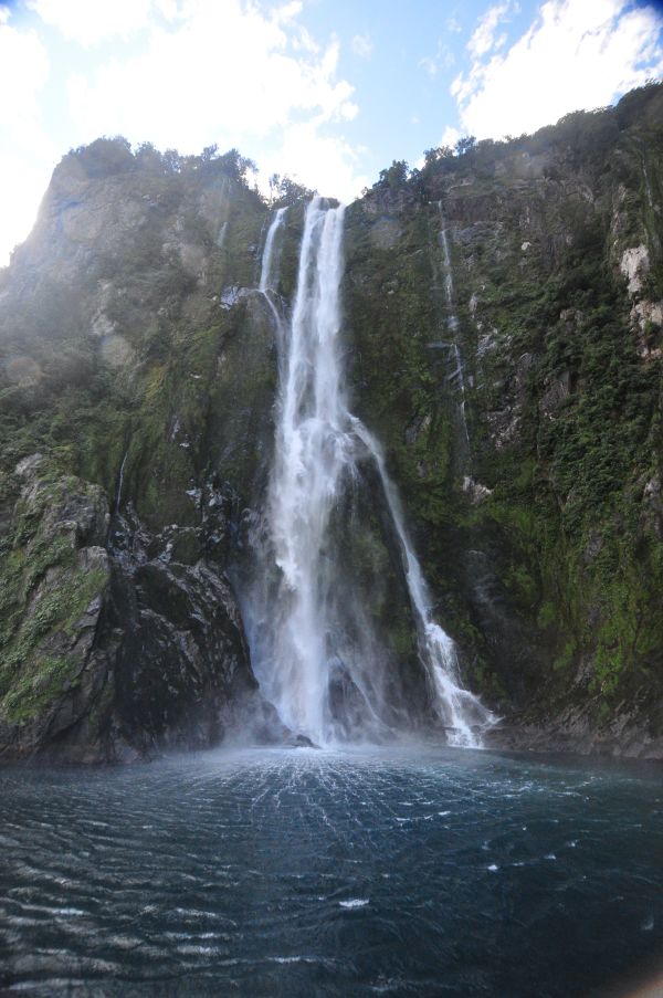 The weather was absolutely perfect, we got really lucky! The boat went around the sound and up to the entrance to the Tasman Sea and back again. Along the way we actually saw dolphins, which apparently it pretty rare around this time of year. We also saw some seals and some interesting bird life. On our boat trip we went passed two waterfalls, the last of which the boat driver moved until the point where the front of the boat was under to waterfall and the people on the nose of the boat got saturated!