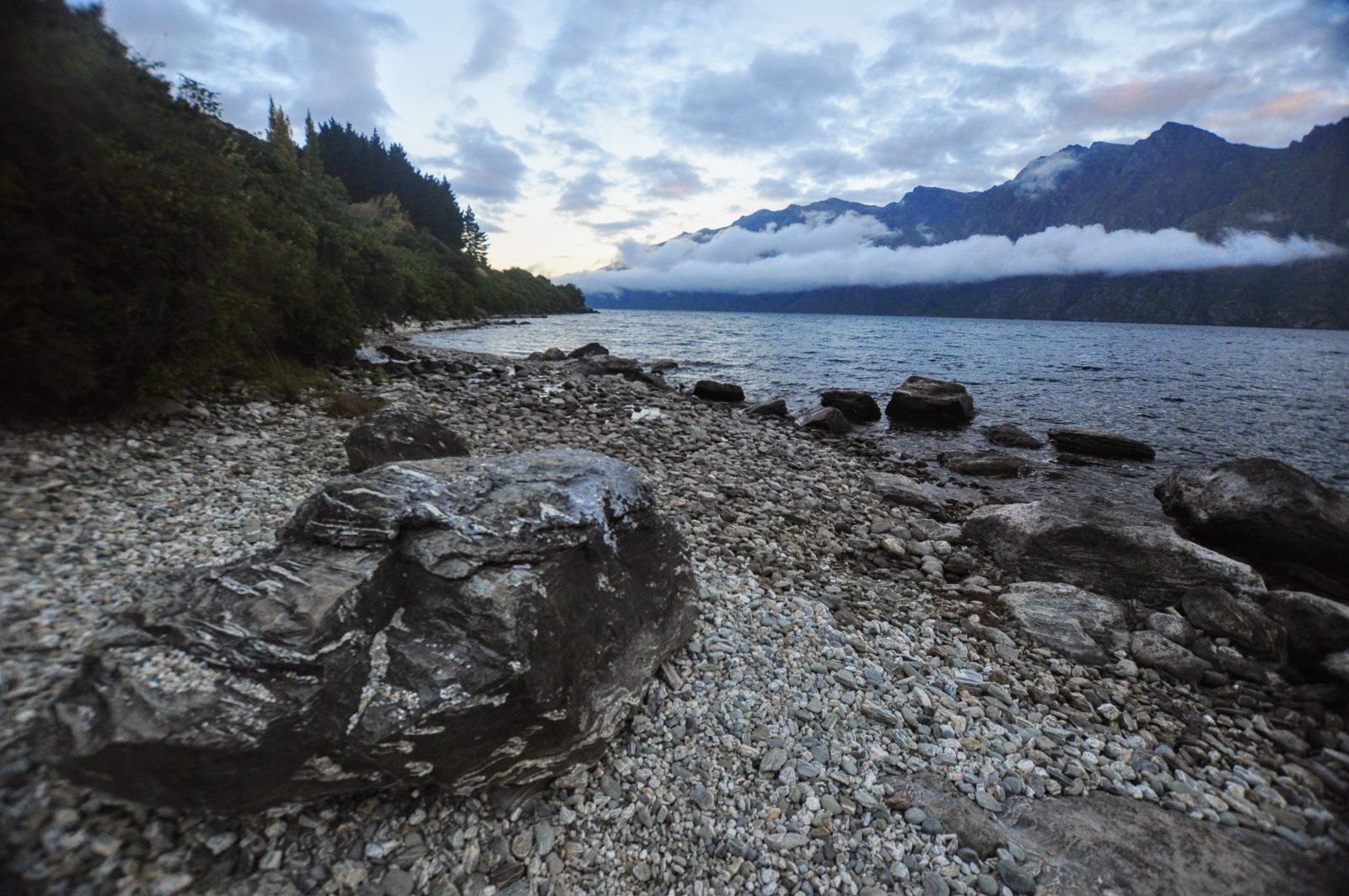 We saw photos of the Aurora from a place called Moke Lake which was only 20 minutes so we went there. It was mostly windy, unsealed, gravel roads and it was pretty dark but Rob did a pretty good job of driving our Jucy van through those roads. When we got there, there were some really bright lights and some pretty big teepees. We couldn’t quite tell what they were doing, it didn’t look like your typical camp site and then we saw a van parked near us that was for a movie production studio so it could have been a movie set. There were even bright colored lights powered by generators shining on the water.